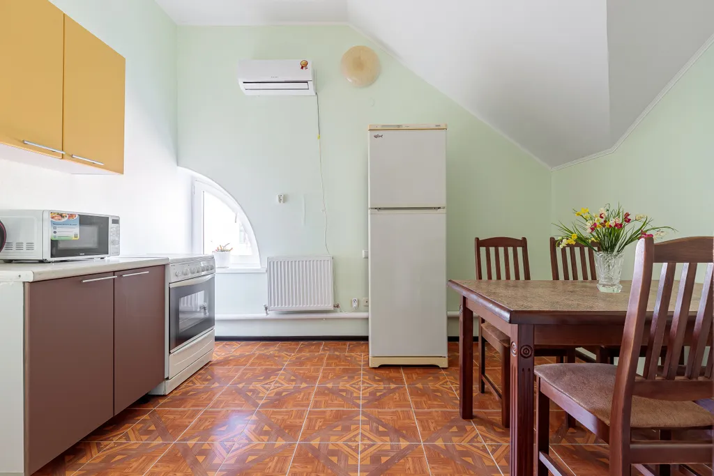 -Оборудованная кухня, посуда, все для приготовления еды.