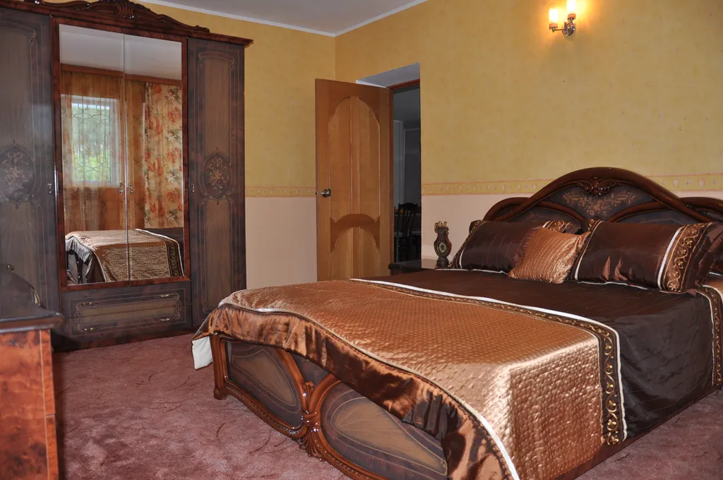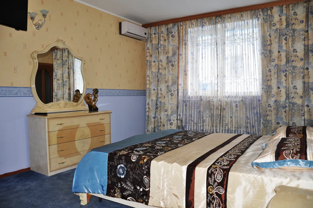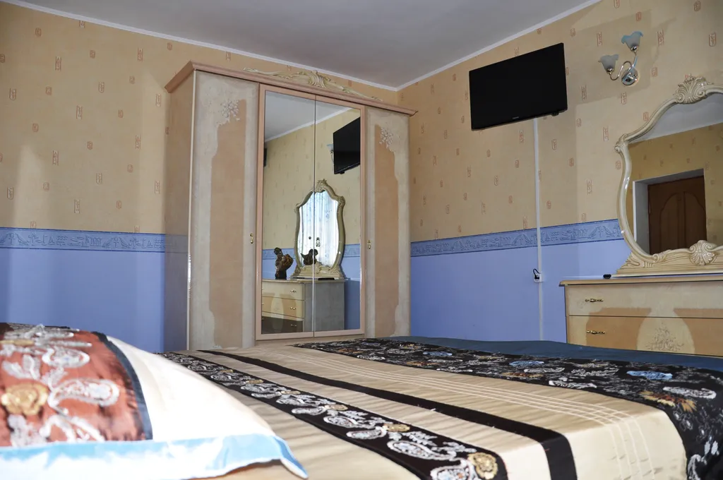 в одной комнате: 2-х спальная кровать (1,6 х 2), прикроватные тумбочки, шкаф, комод, телевизор, кондиционер (сплит-система).