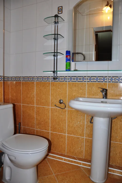 В ванной комнате: душ, раковина, унитаз, тазик для стирки белья, зеркало, полотенца, мыло и туалетная бумага.