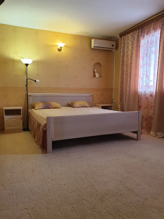 в другой комнате: 2-х спальная кровать (1,6 х 2), прикроватные тумбочки, шкаф, комод, телевизор, кондиционер (сплит-система). Есть выход на балкон.