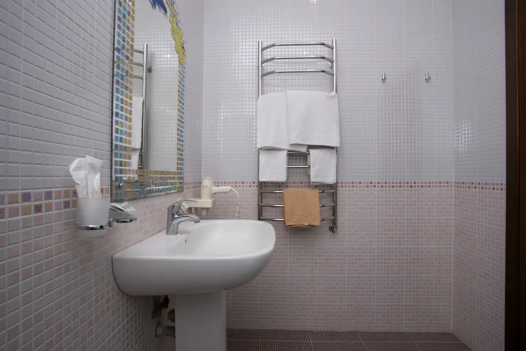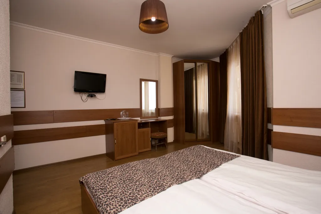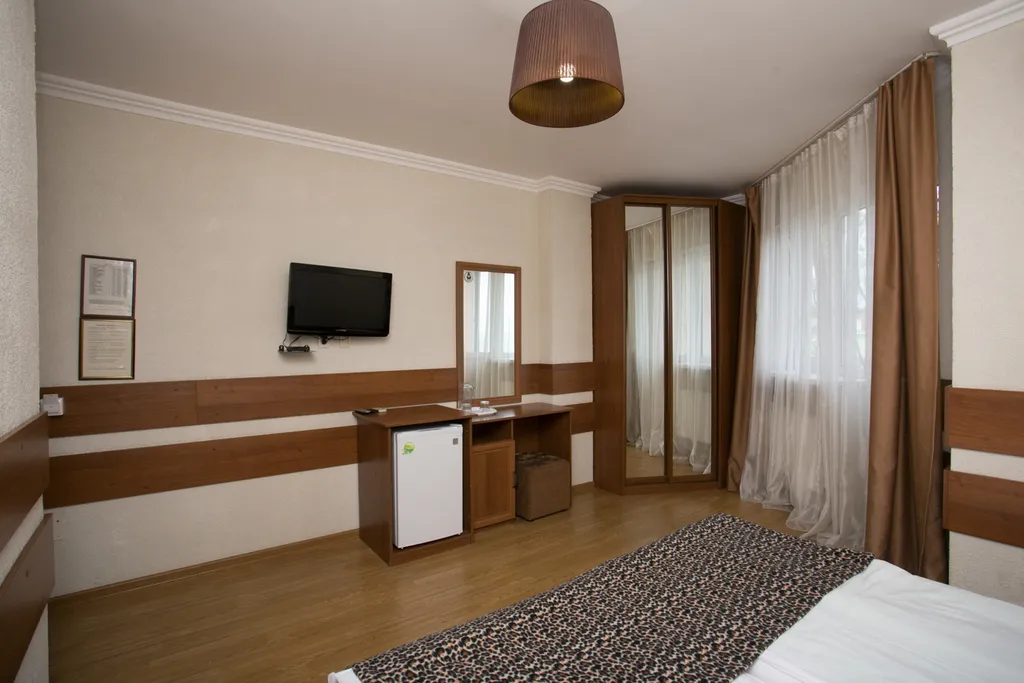 В номере: кухня, плита, посуда, холодильник, кондиционер, 2 телевизора, стиральная машина, фен.
