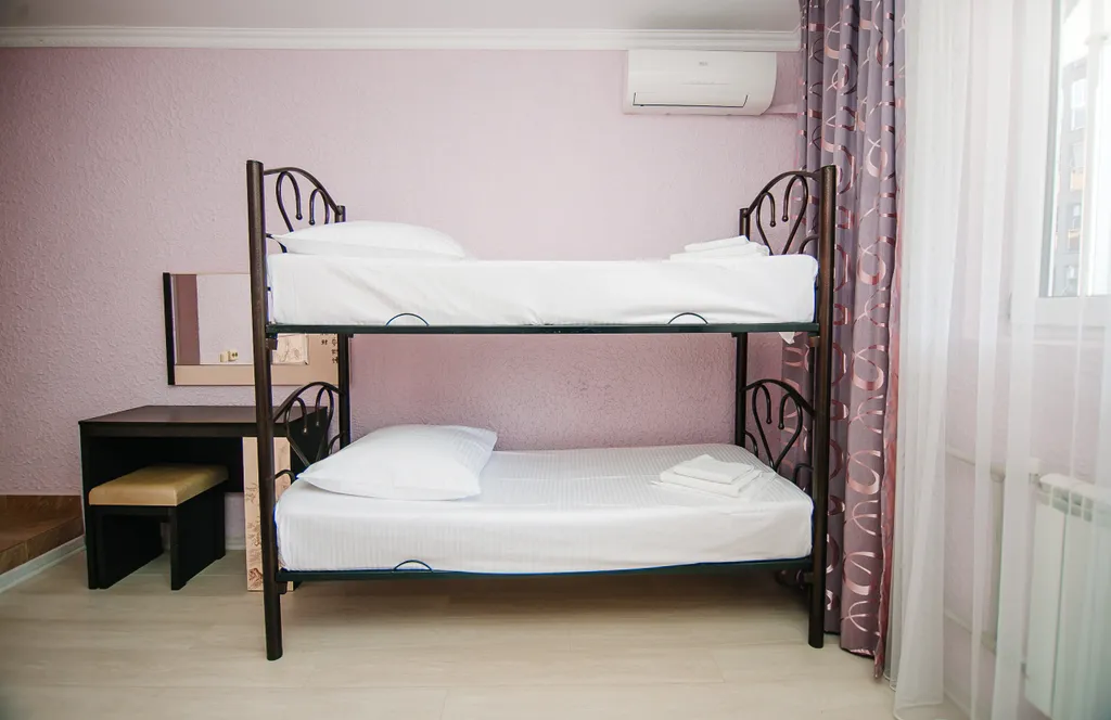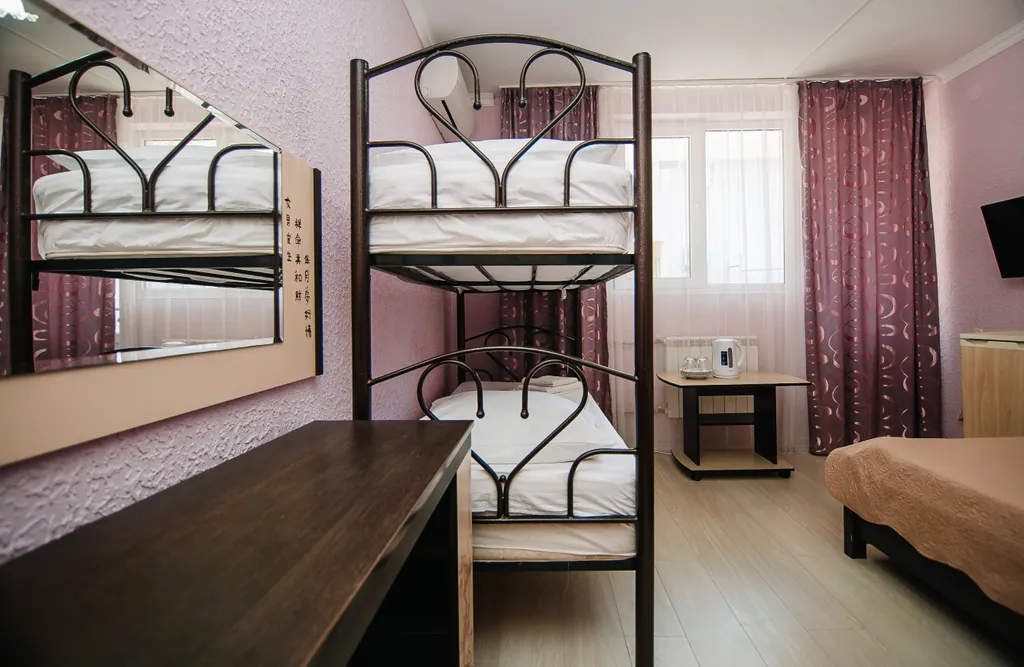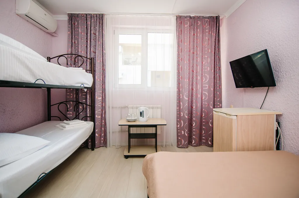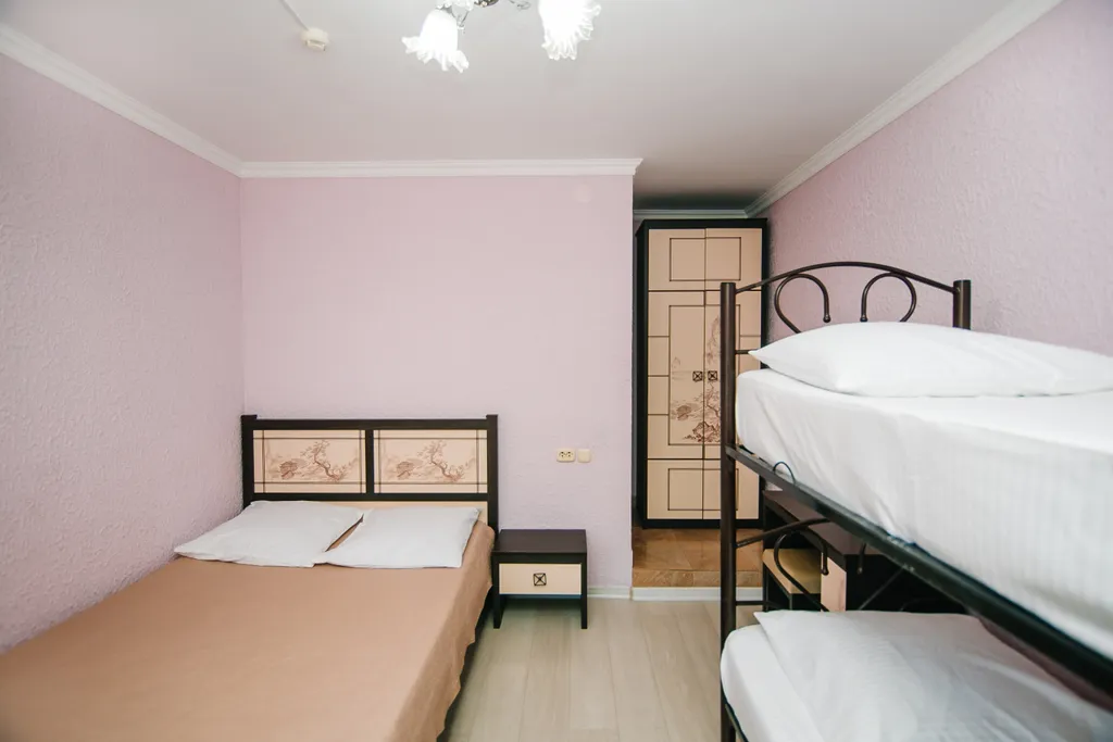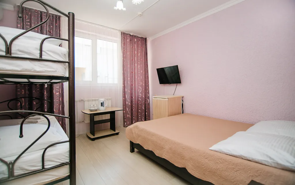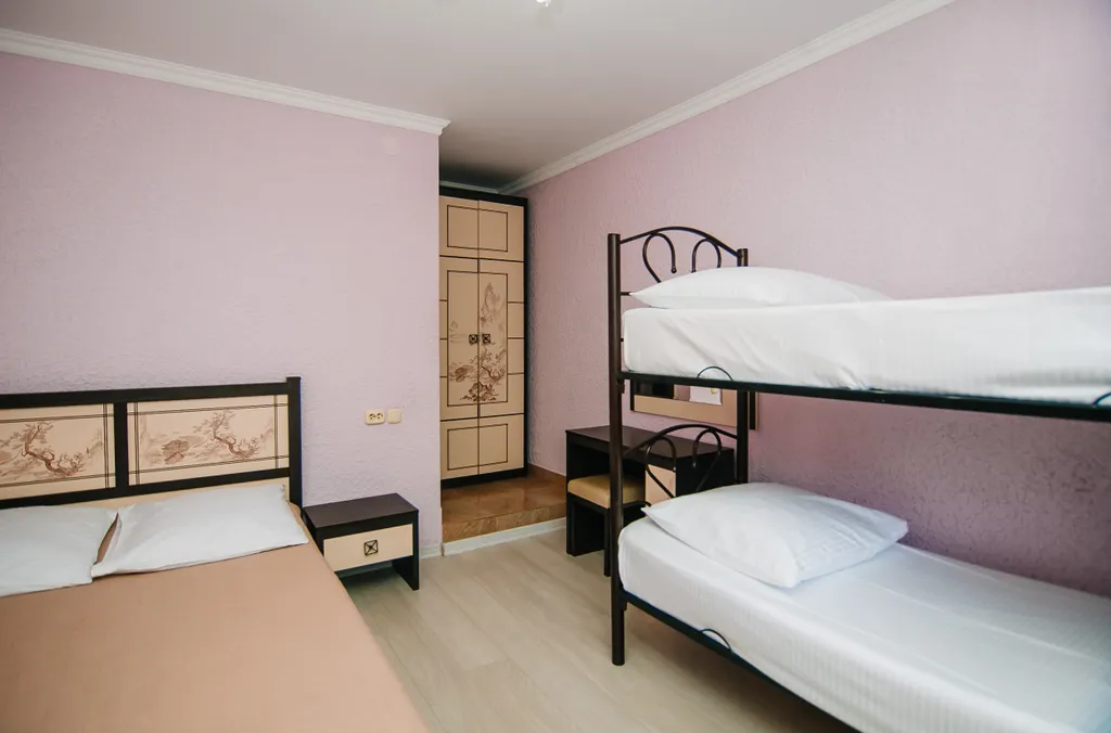 В номере есть всё необходимое для комфортного отдыха: двуспальная кровать и двухъярусная кровать, собственная ванная комната с душевой кабиной, вместительный шкаф для одежды, а также стандартные удобства - телевизор, кондиционер, высокоскоростной Wi-Fi, холодильник и электрический чайник. Снаружи номера есть выделенная зона отдыха для гостей.