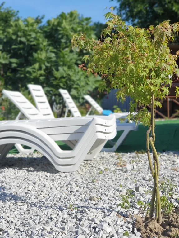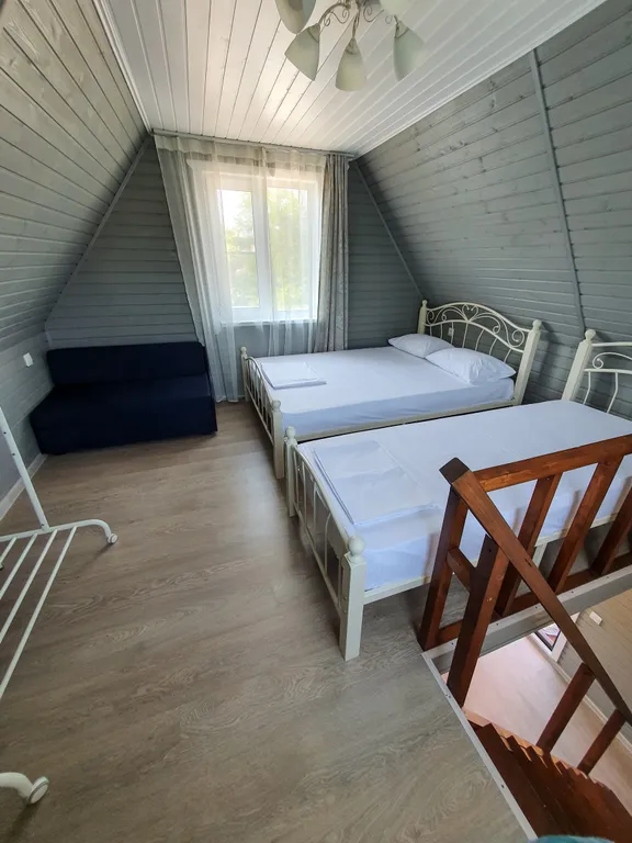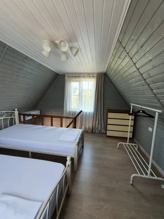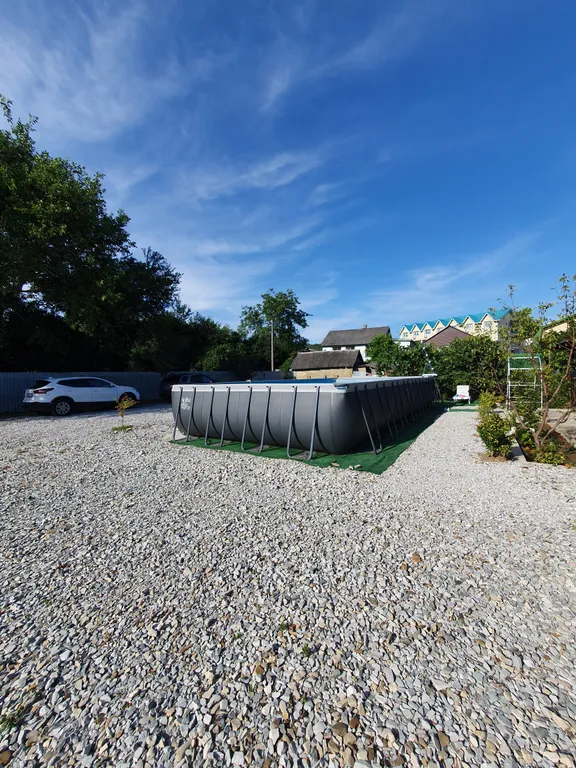 Всего на территории 2 домика и гостевой дом на 9 номеров. Есть большой бассейн 10*5 м, беседка, мангальные зоны, автостоянка на территории, для детей: горки, игрушки, качели...