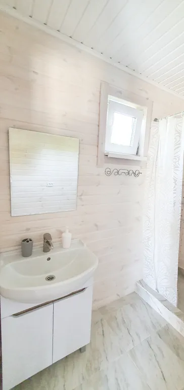 Наши домики оснащены всем необходимым: кухня, чайник, микроволновка, холодильник, ТВ, постельное бельё, полотенца, туалетные принадлежности, терраса.