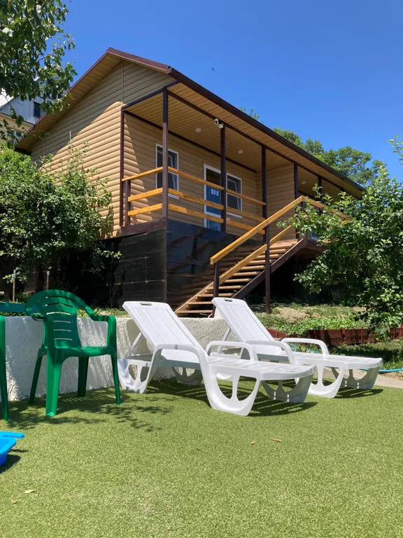 Также на территории для гостей: зона отдыха с бассейном, лежаками, мангальная зона, большая летняя кухня, придомовая территория, парковка.