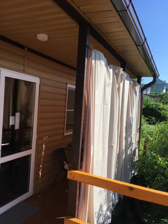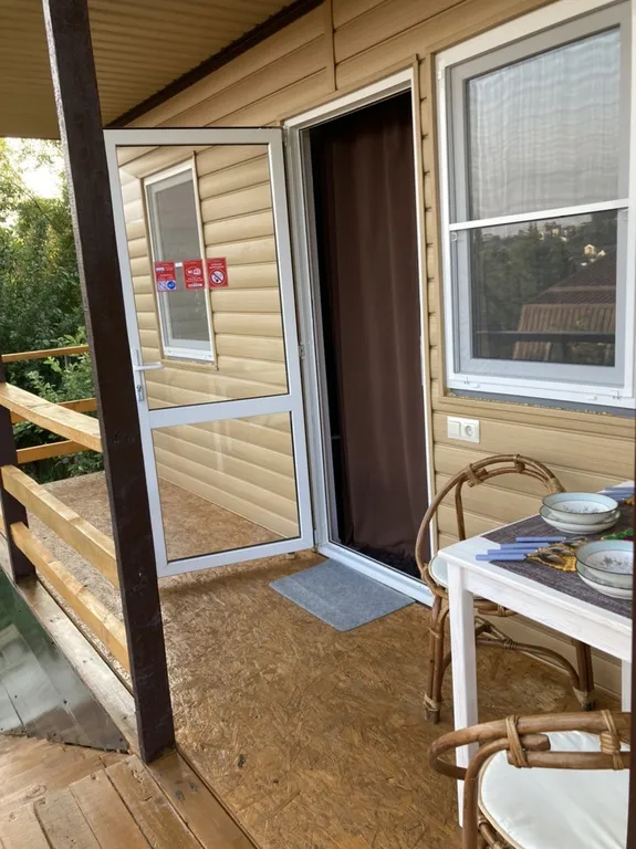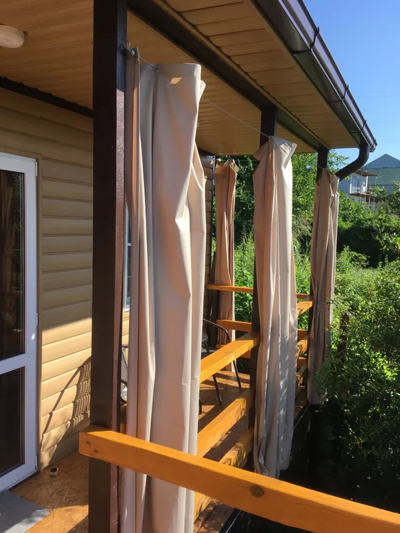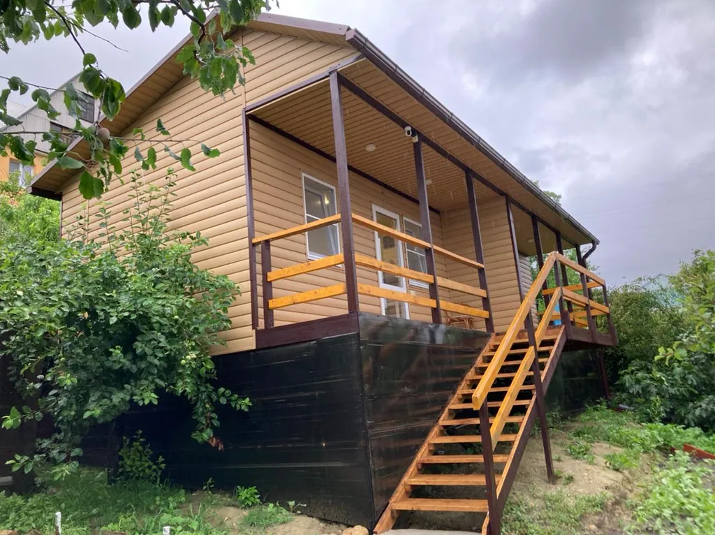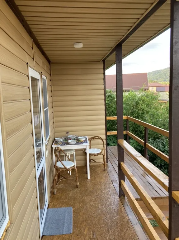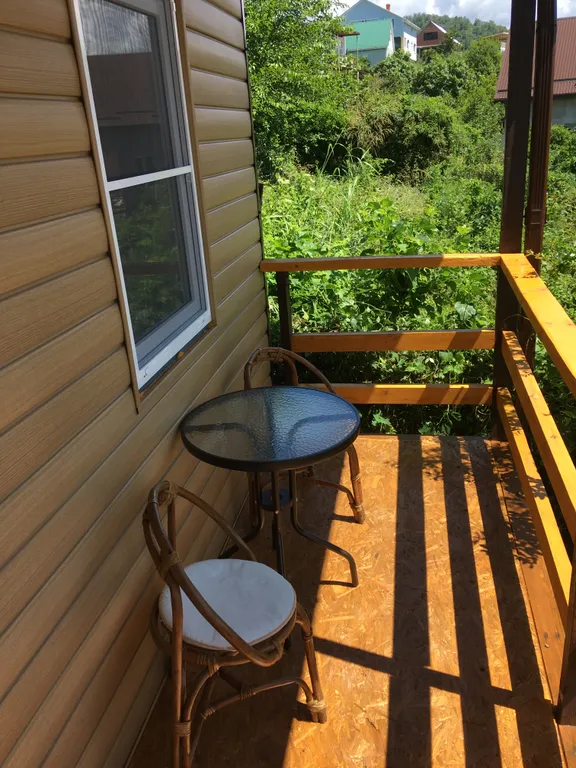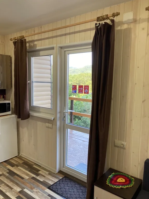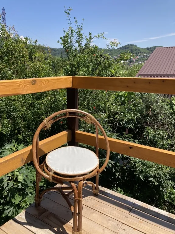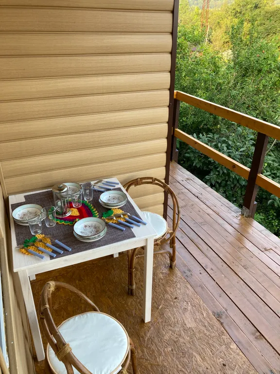 Дом состоит из гостиной и ванной комнаты, а также открытой террасы с потрясающим видом на горы, фруктовый сад и море.