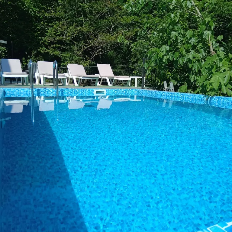 * бассейн с шезлонгами с видом на море и горы 28-35 градусов в летний период;