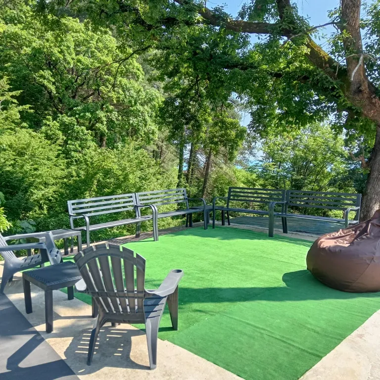 * лаундж-зона с видом на море и ручей;