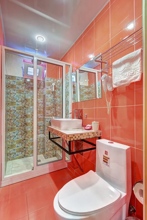 Собственный санузел оборудован душем, умывальником и туалетом. Горячая и холодная вода подаются круглосуточно.
