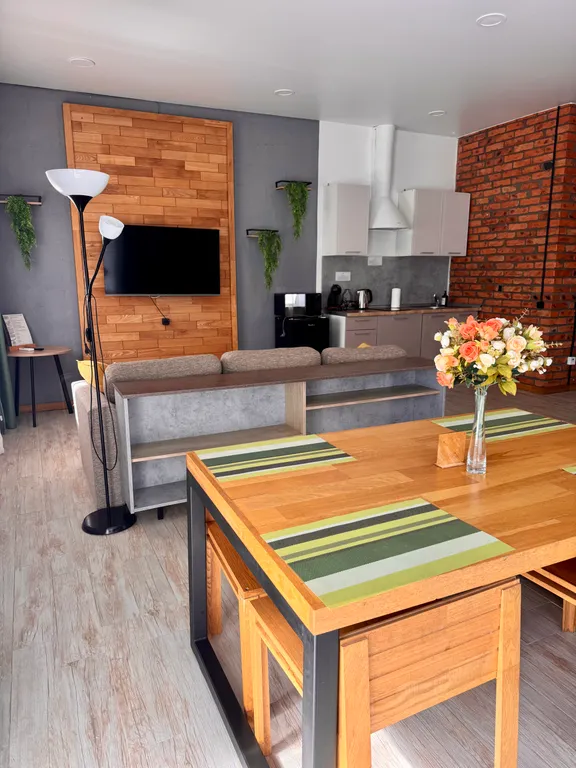 Апартаменты оснащены кондиционером, холодильником, микроволновой печью, сенсорной варочной панелью, электрочайником, кофемашиной, гладильными принадлежностями (утюг и гладильная доска), телевизором, бесплатным доступом в интернет, а также ванной комнатой с душем и стиральной машиной, которая укомплектована бесплатными туалетно-косметическими принадлежностями.