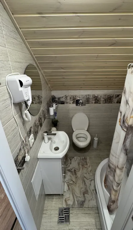 - В общей гостевой комнате обеденная зона, два дивана, телевизор, холодильник, микроволновая печь, чайник, все необходимые столовые принадлежности, в том числе бокалы;