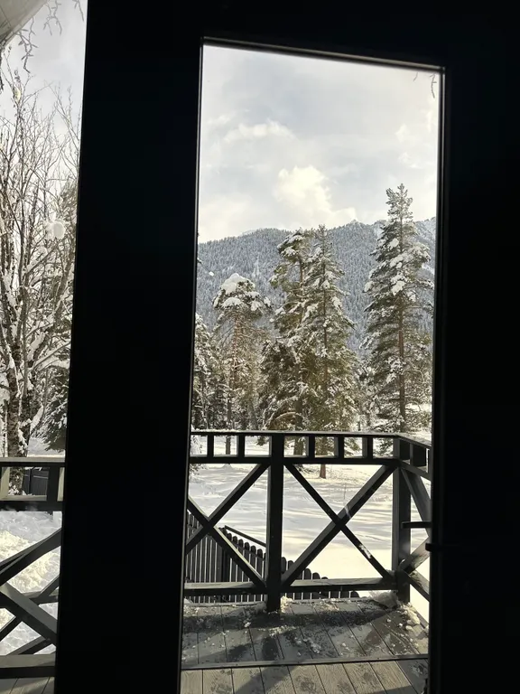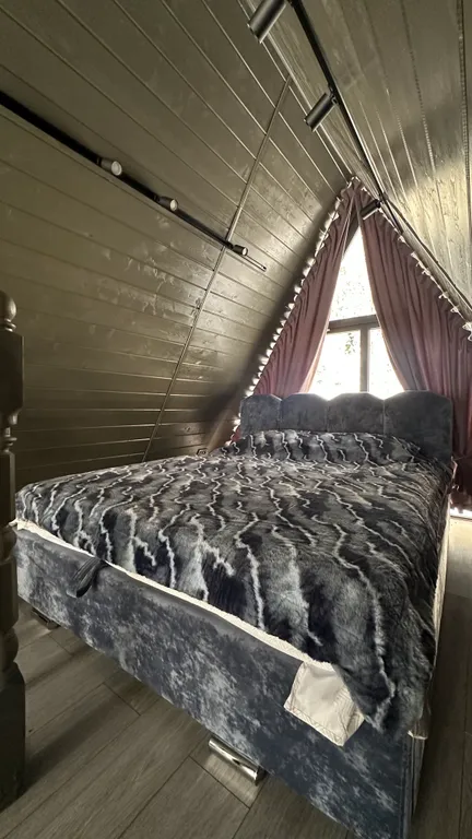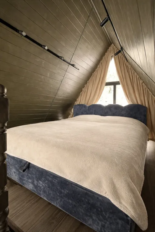 2 этаж: двуспальная кровать и прекрасный вид на горы.