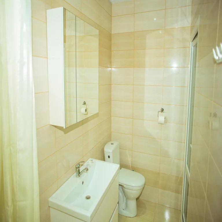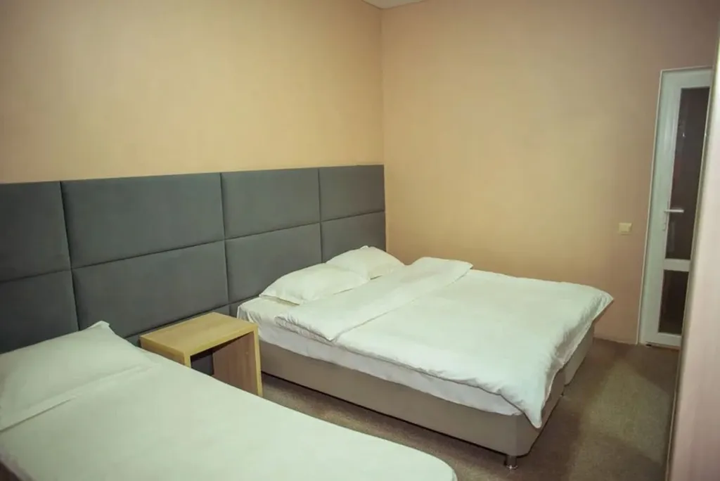 В номере: универсальные спрингбоксы, которые могут трансформироваться в двуспальную и односпальную кровать или 3 односпальных кровати, санузел (туалет, умывальник, душ), гигиенические средства, шкаф, прикроватная тумба, холодильник, набор полотенец, ТВ, кондиционер, фен, маленькая терраса. Номера размещены на первом этаже.