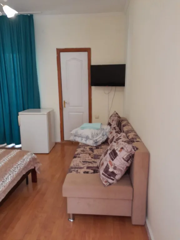 Гостевой дом «уютный дворик» с собственным двориком расположен в городе Алушта. Находится в 5 минутах ходьбы от набережной, до моря 15 минут, до магазина 5 минут, имеется небольшой подъём в горку. Парковка, на улице вдоль дома для 2 машин. На балконе можно посидеть, отдохнуть. Предоставляется бесплатный wi-fi. В квартире имеется всё необходимое для отдыха: двуспальная кровать и раскладной диван, помещается до 3 человек, телевизор, шкаф для одежды, кондиционер. Имеется отдельная просторная кухня для приготовления пищи на этаже, в ней есть вся необходимая посуда, плита газовая, стиральная машина. В квартире есть душ, туалет, кондиционер, холодильник, стол, стулья.