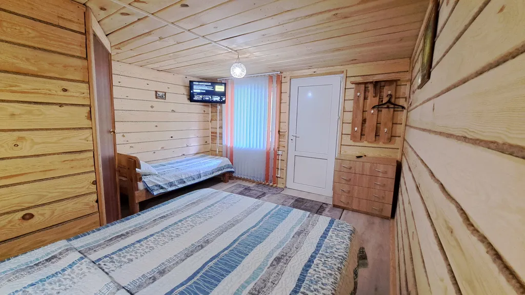 В номере 1спальная кровать и 2спальная, санузел (душ, туалет, раковина), смарт-ТВ, вешалка, комод, постельное и полотенца, туалетные принадлежности (гель, шампунь, жидкое мыло, т/б).