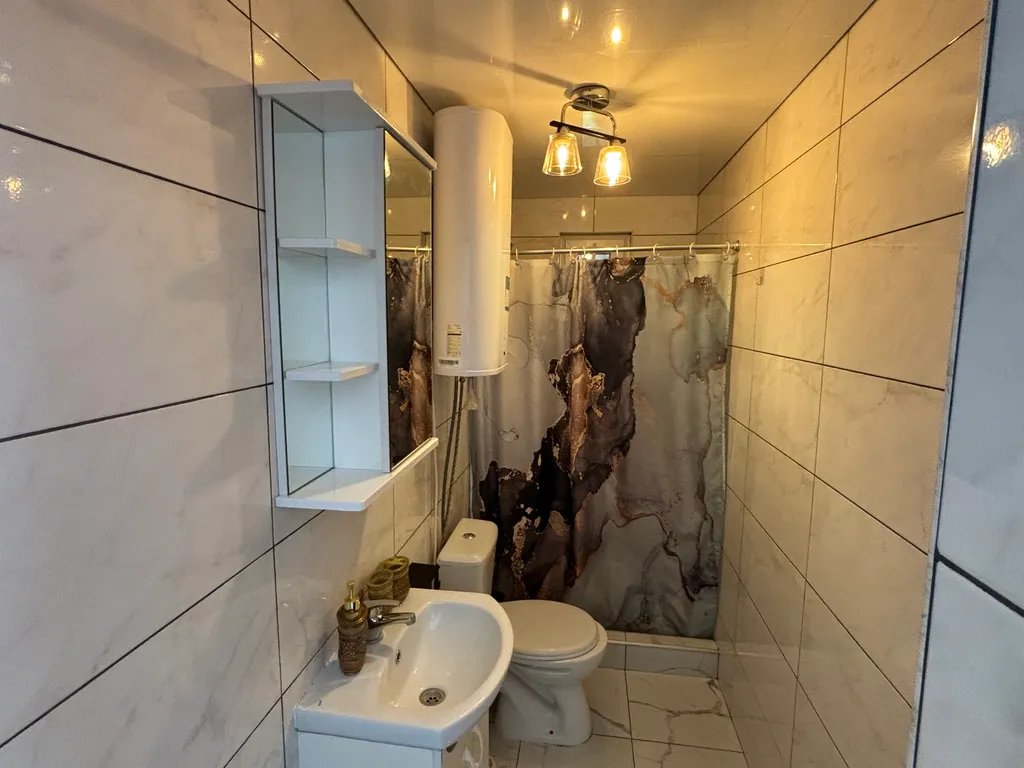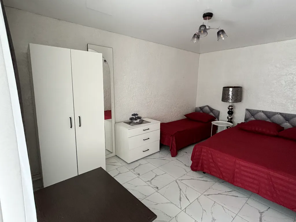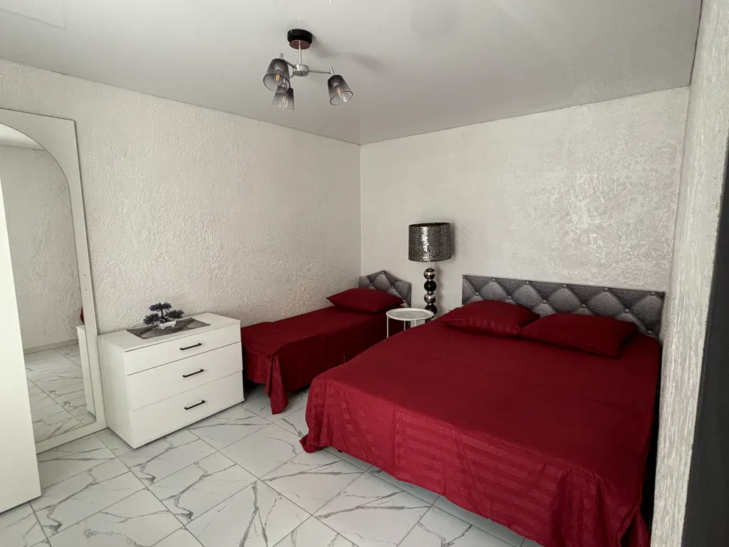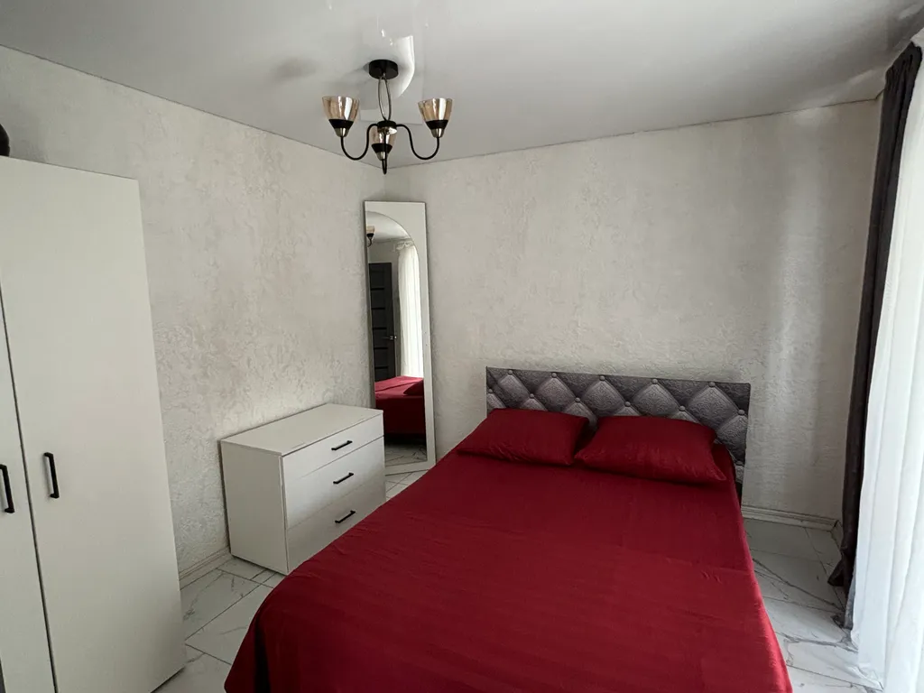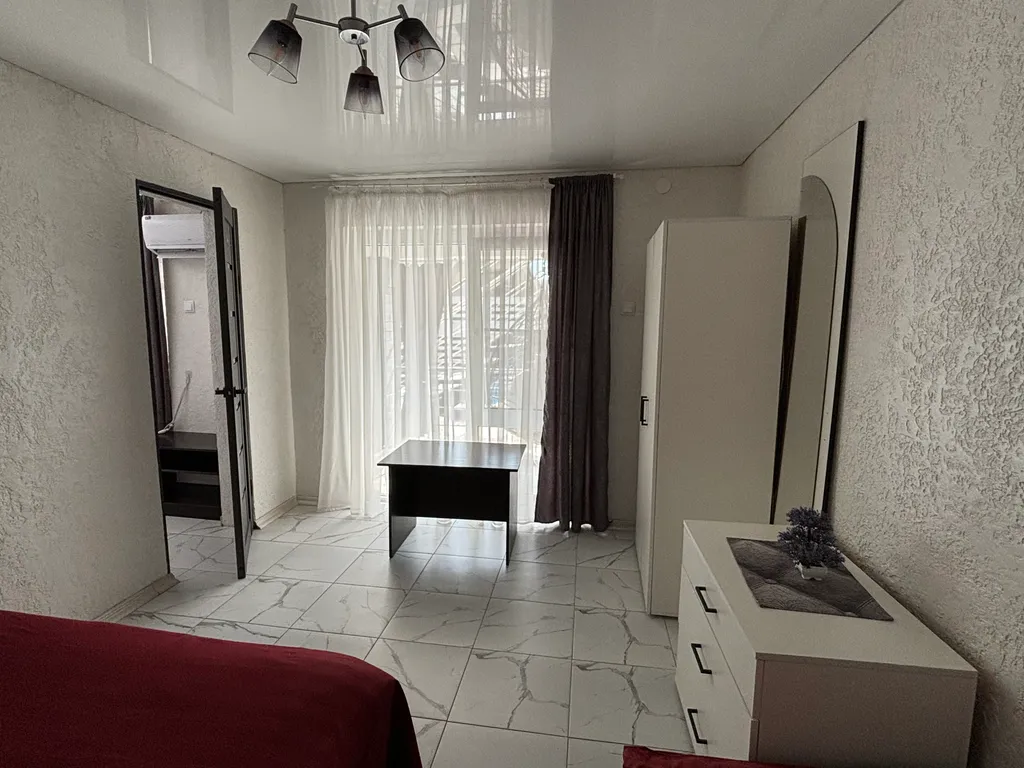 В апартаментах у вас лоджия (есть кресло-кокон и диван для отдыха), которую можно закрыть от лишних глаз, кухня-гостиная, две изолированные спальни и санузел.