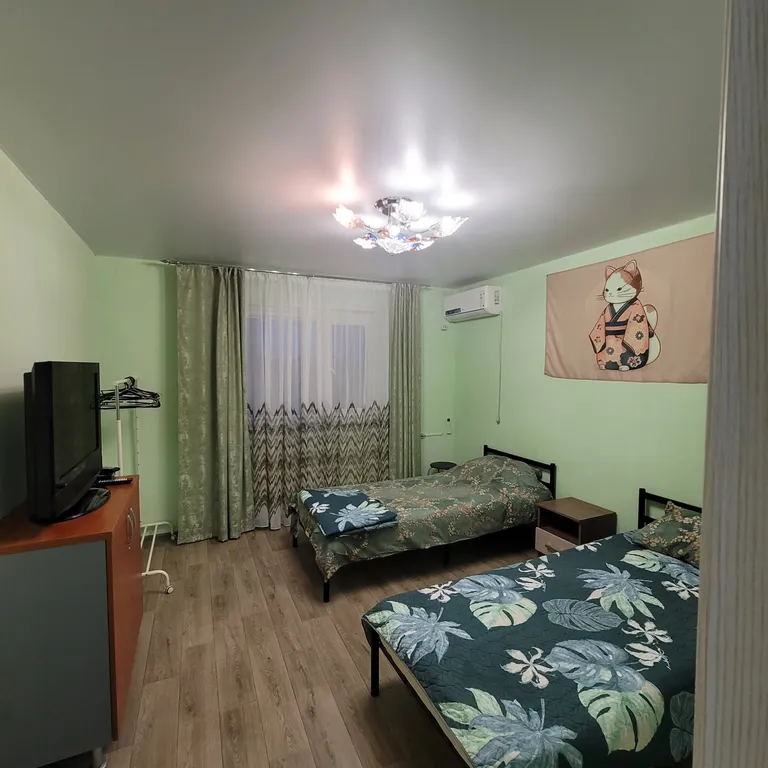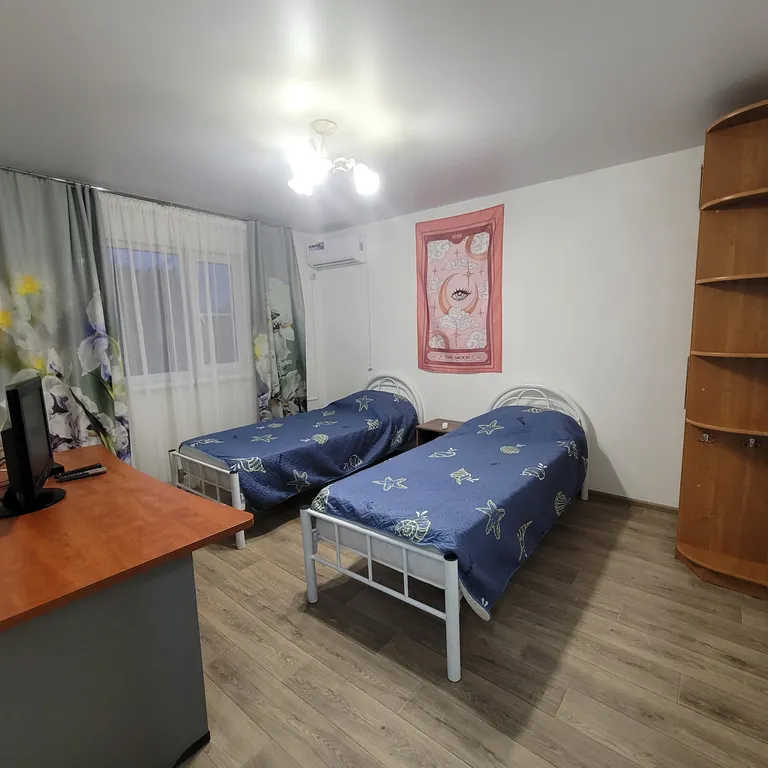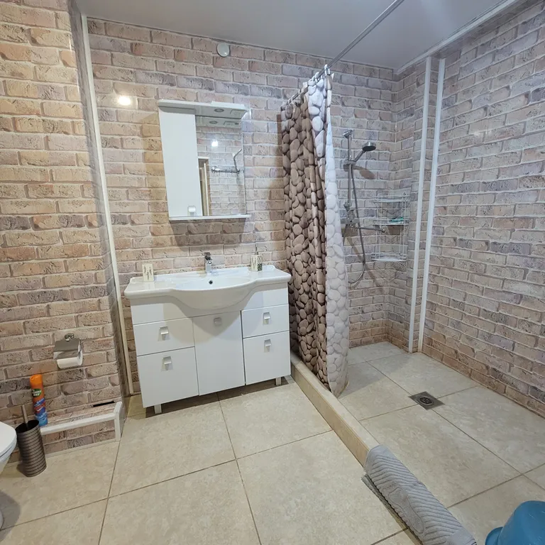 На обоих этажах душ и туалет. Во всех комнатах телевизоры, работает wi-fi. Рядом с домом беседка и мангальная зона для вечернего отдыха. Шумим до 23.00.
