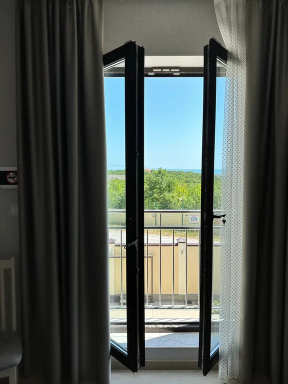 - Вид и пространство. Французский балкон открывает панораму на море и горы — идеальное место для утреннего кофе или вечернего отдыха.