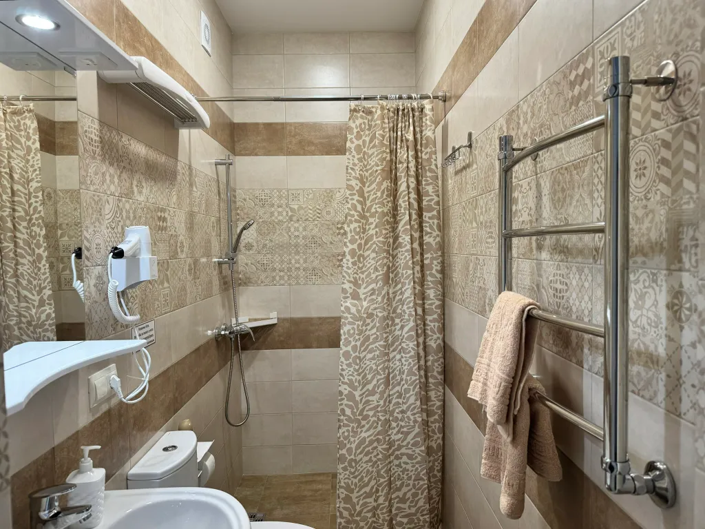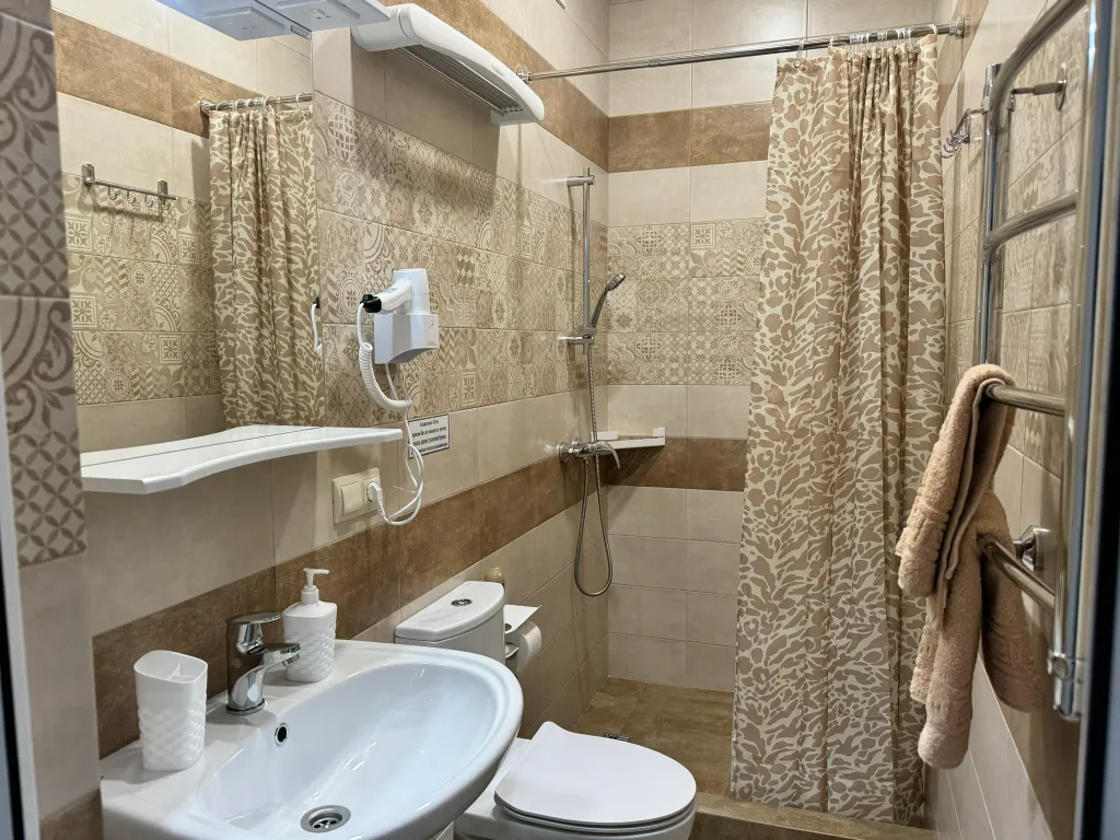 Техника. В номере есть всё необходимое: холодильник, чайник, кондиционер, телевизор, фен и сейф для ценных вещей.