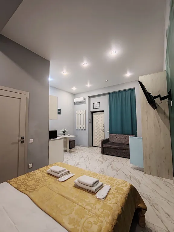В отеле возможно размещение с животными (только собаки до 30 см в холке) бесплатно. Под запрос.