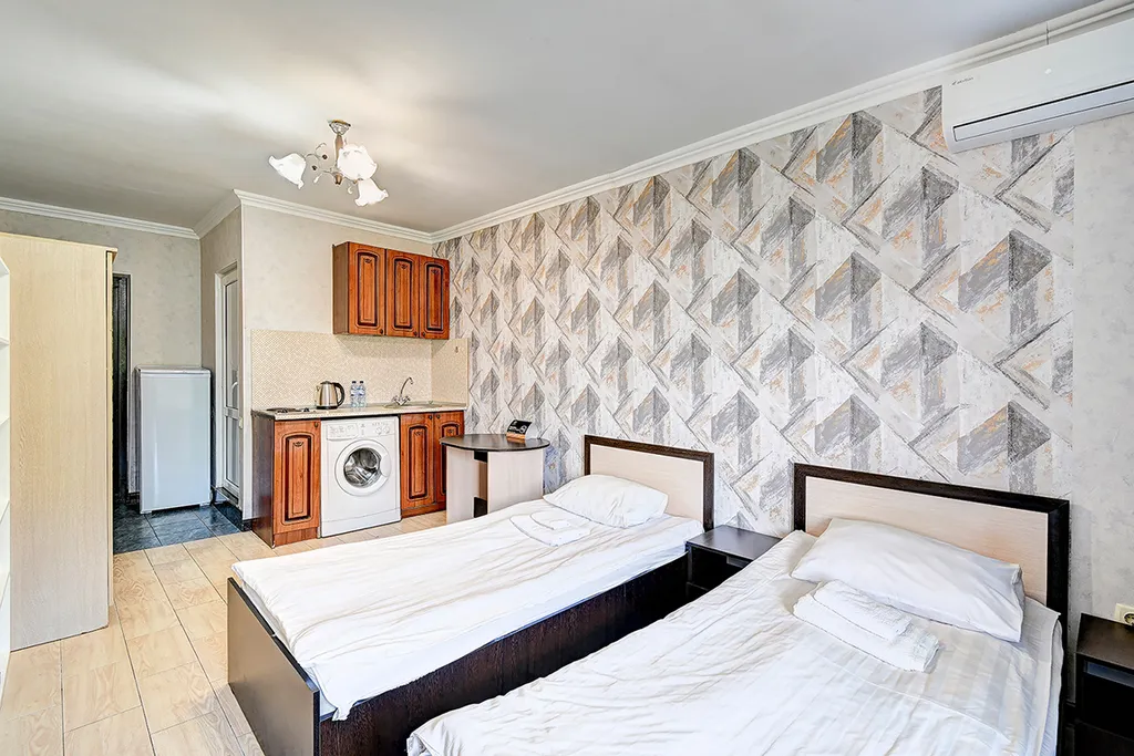 - Возможно размещение с собакой весом не более 5 кг за дополнительную плату — 500 руб./сут.