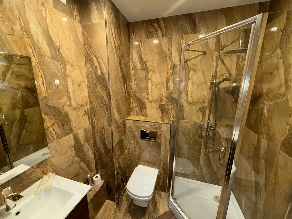 Собственная ванная комната с совмещенным санузлом и душевой кабиной, оборудована всем необходимым.