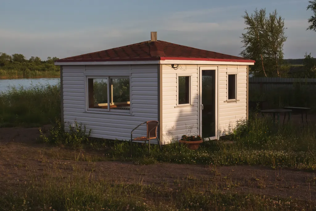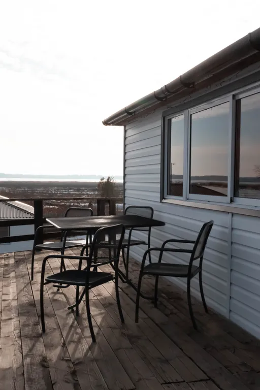 Обустроенный для отдыха большой двор. Во дворе свой песчаный пляж, открытая терраса для отдыха с видом на озеро, детская площадка, качели, батут, беседка, терраса на воде.