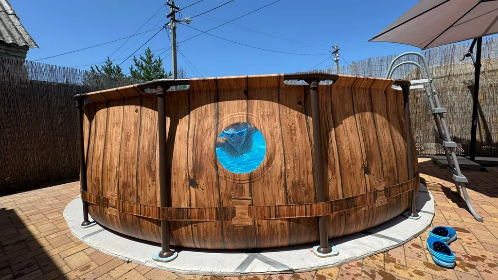 Летний бассейн (каркас с качественной системой очистки d 427см), шезлонги