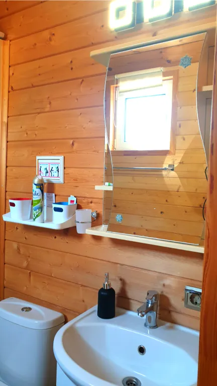 Рассчитан на 4 гостя (спальные места: на первом этаже диван-кровать, на мансарде 2 удобные односпальные кровати). По запросу предоставляем детскую кроватку. По предварительному согласованию возможно размещение с домашними животными. Услуги прачечной (стирка и сушка) возможны за дополнительную плату, гладильные принадлежности предоставляем для самостоятельной глажки. Парковка на территории, в можжевеловом лесу беседки, гамаки, большой грильплатц. В подарок мы организуем для вас 1 посещение сауны в нашем комплексе.( от 4х дней). Возможность приобрести напитки, снеки, кофе .