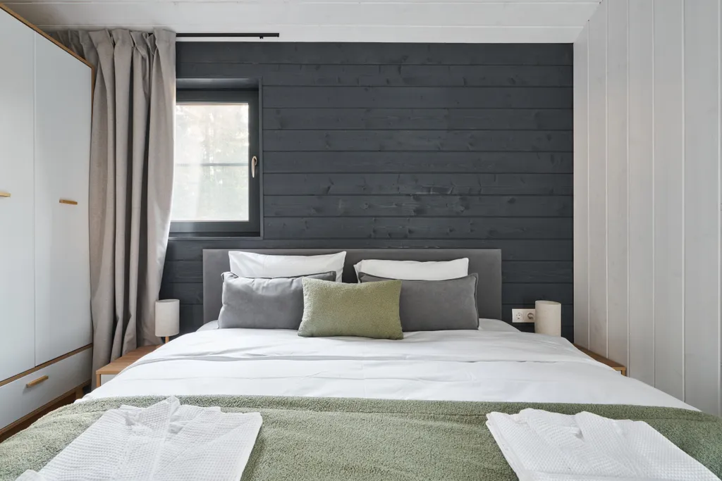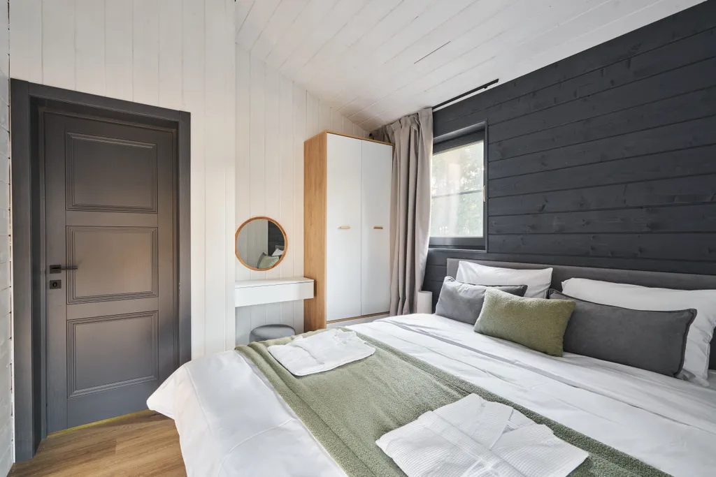 Просторные спальни с ортопедическими матрасами, где сон приходит под шепот сосновых крон;