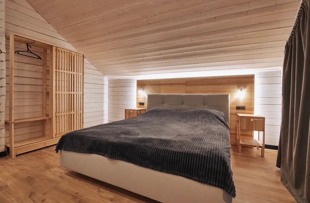 2 этажа, 4 большие спальни с удобными кроватями размера king-size, 2 сан узла (с душевой кабиной и ванной), 2 гардеробные, просторная гостиная, большая терраса, вместительная кухня, укомплектованная всей необходимой техникой и посудой (индукционная плита, микроволновая печь, посудомоечная машина, духовой шкаф, холодильник, электрочайник).