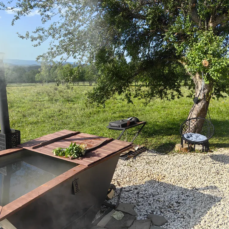 Приветственный перекус по прибытию (эко-мёд с собственной фермы, травяной чай, собранный летом, адыгейский сыр), в холодильнике лежат фермерские свежие яйца на завтрак. Ежедневный бесплатный трансфер в поселок за продуктами или составляете список продуктов, закупаем и привозим. Отдохнувший у нас ждёт восстанавливающий отдых, наедине с природой, спокойствие и уют, у нас вы обретёте внутренний баланс, сможете замедлиться и уделить внимание своим чувствам и желаниям.
