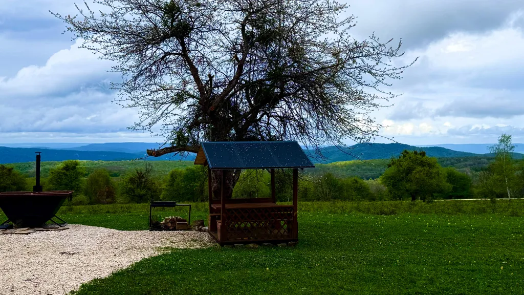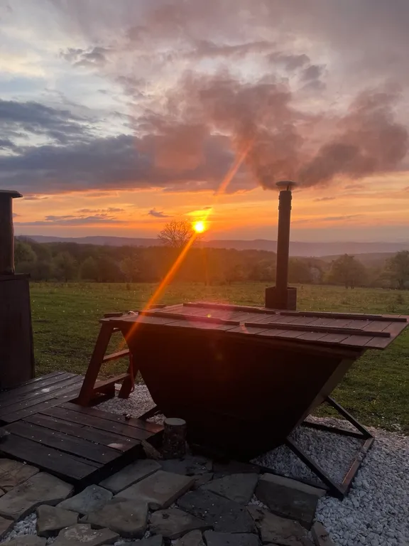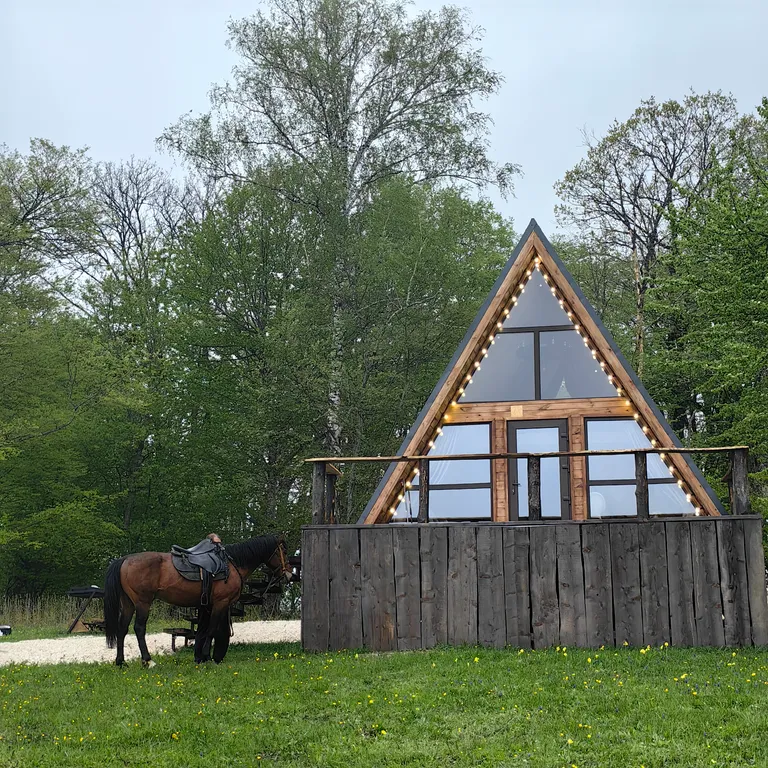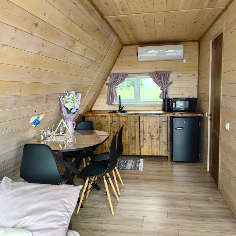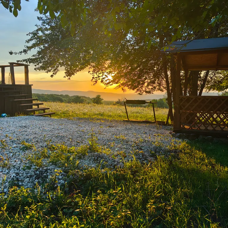Тихое атмосферное место, вокруг природа, рядом пруд, шикарные виды на горы и закаты прямо из домиков.