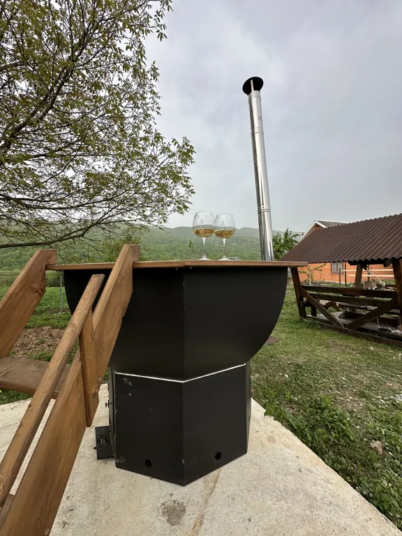 - Чан на дровах, расположенный рядом с домом. Это незабываемые впечатления, любоваться звездным небом в теплой воде, на свежем воздухе