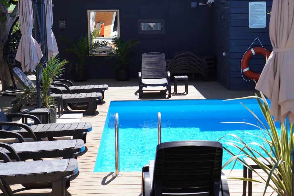 На общей придомовой территории большая терраса с подогреваемым в летний период бассейном и мангальной зоной (общая территория на шесть домов).
