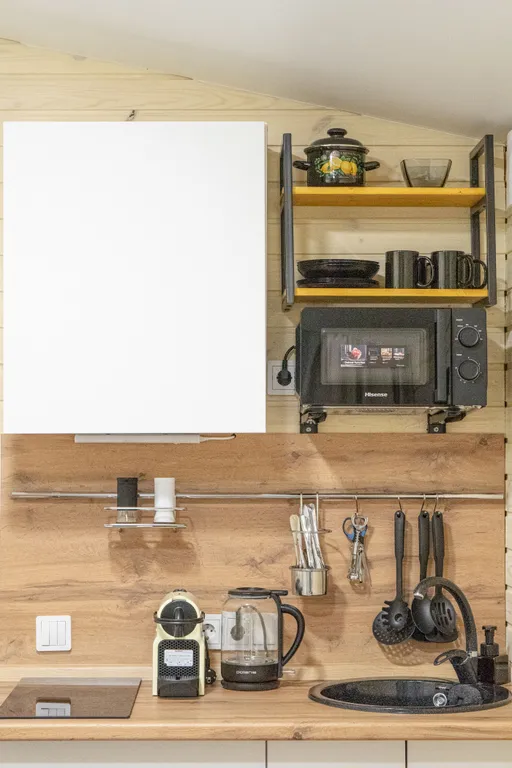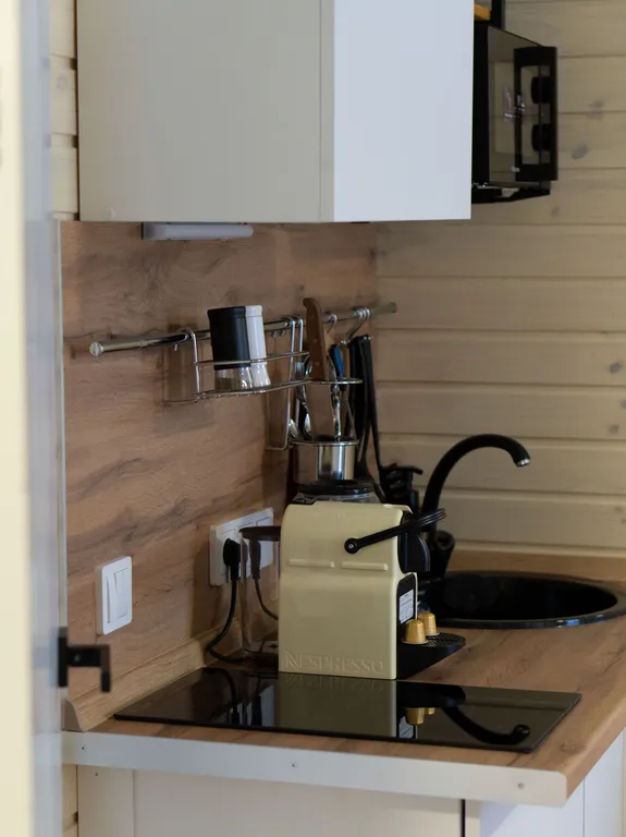 Укомплектованная кухня - холодильник, чайник, кофемашина и прочая необходимая кухонная утварь. Имеется утюг и гладильная доска, кондиционер, TV, Wi-Fi, на общей территории имеется стиральная машина в доступе 24/7.
