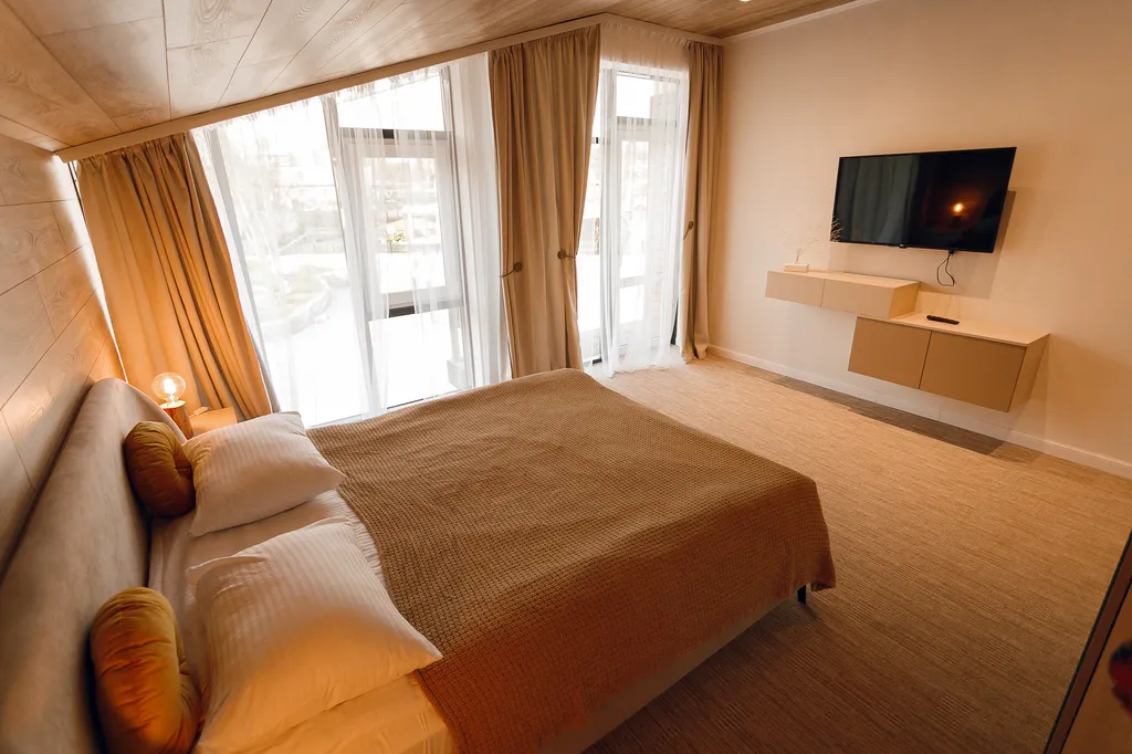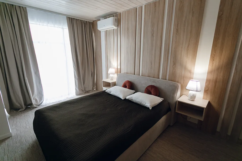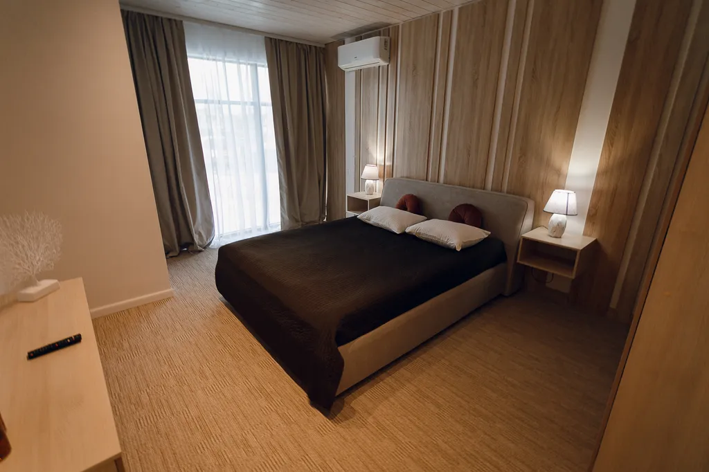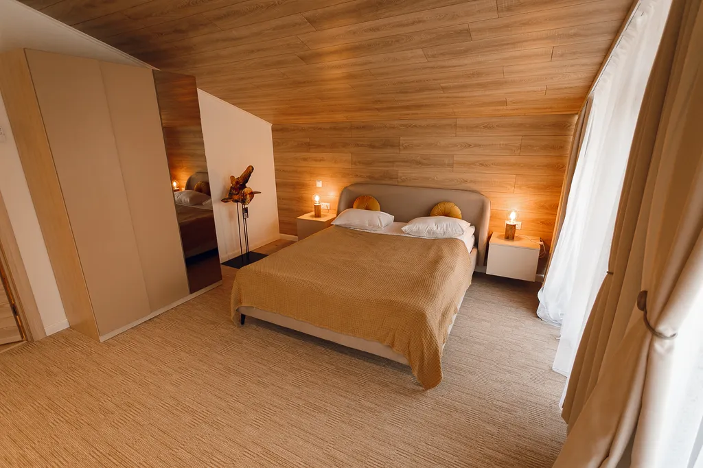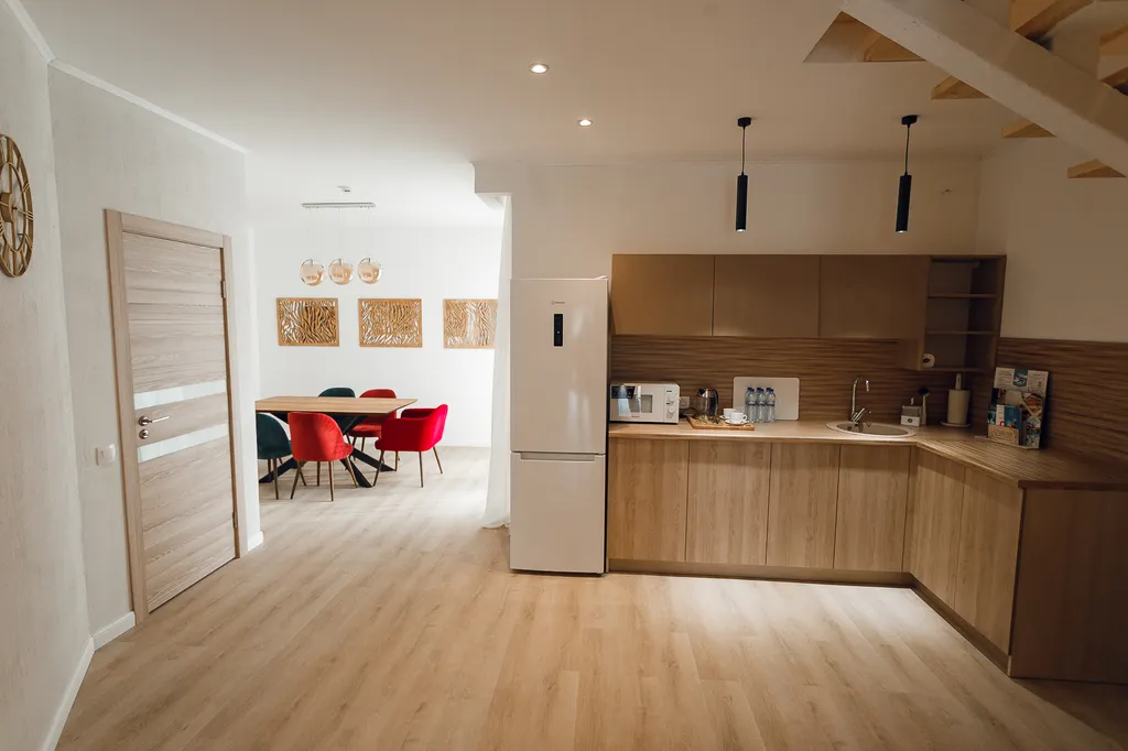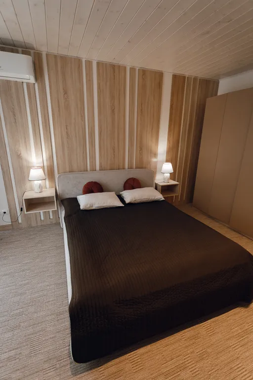 Эстетика в каждой детали и интересное сочетание текстур, прекрасное решение для комфортного размещения как компании до 20 человек, так и для семейных пар с детьми.