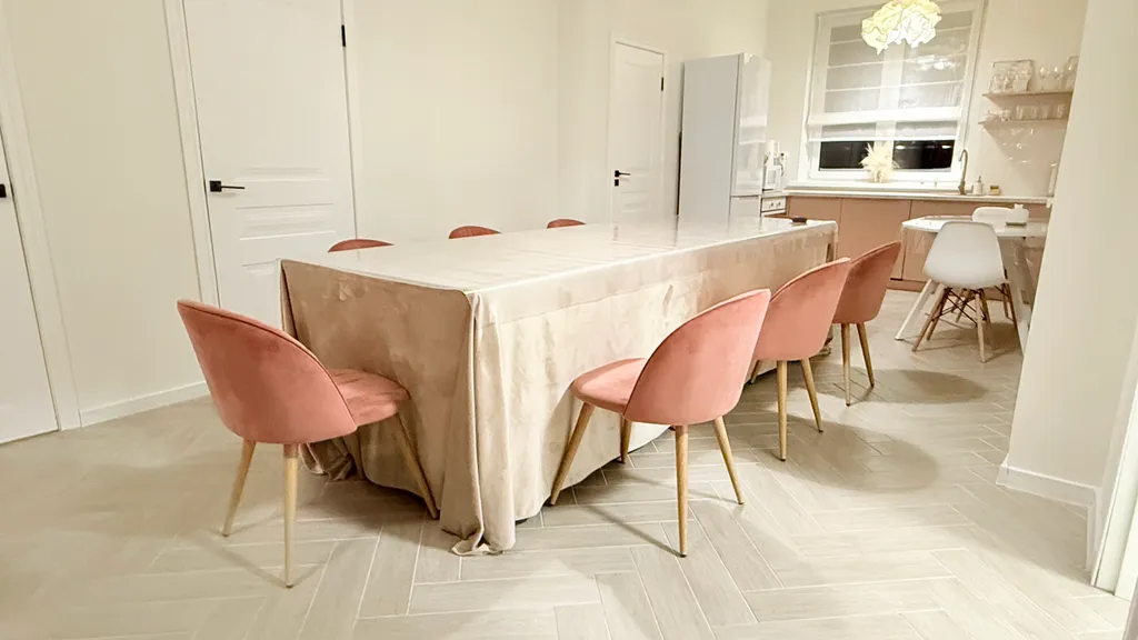 Запрещено ходить в доме в уличной обуви, везде тёплые полы и ходить можно хоть босиком