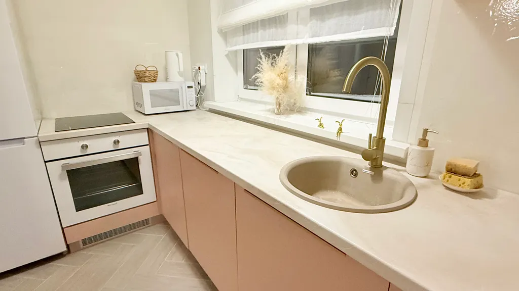 кухонный гарнитур, холодильник, варочная панель, духовой шкаф, микроволновая печь, посудомойка, набор всей необходимой для праздников посуды (чай, кофе, соль, сахар всегда наличии)