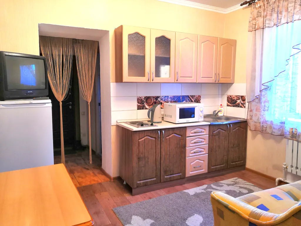 Двуспальная кровать (трансформер), диван-софа, тумбочки, шкаф, стол кухонный гарнитур. Расположен в шаговой доступности от сан. Родник Алтая, гостиничного комплекса Беловодье, водного мира. Вблизи круглогодично работают большое количество кафе, ресторанов, имеется каток, пункт проката спортинвентаря.