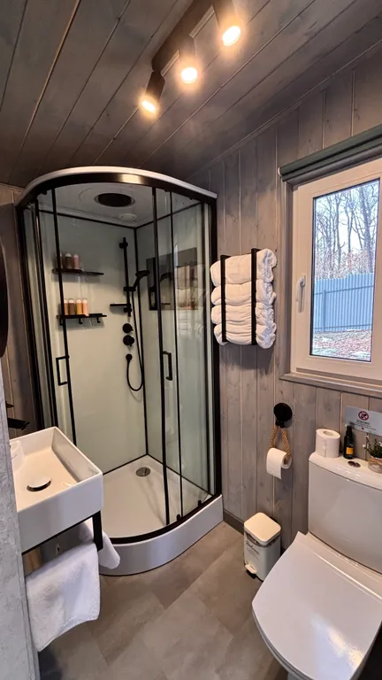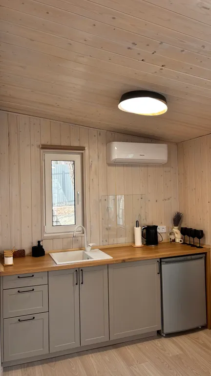 В доме имеется абсолютно всё необходимое для комфортного проживания четырёх человек: посуда, столовые приборы, штопор, консервный нож, бокалы, рюмки, разделочная доска, микроволновая печь, холодильник, тостер, индукционная плита, сковородка, кастрюли, чайник, чай, сливки, сахар, соль, бумажные полотенца, салфетки, постельное бельё, полотенца для душа, для рук, для ног, тапочки, зубные наборы, гель для душа, шампунь для волос, туалетная бумага, фен, полотенцесушитель, водонагреватель, кондиционер, обогреватели в каждой комнате, огнетушитель, аптечка, power bank и многое другое.