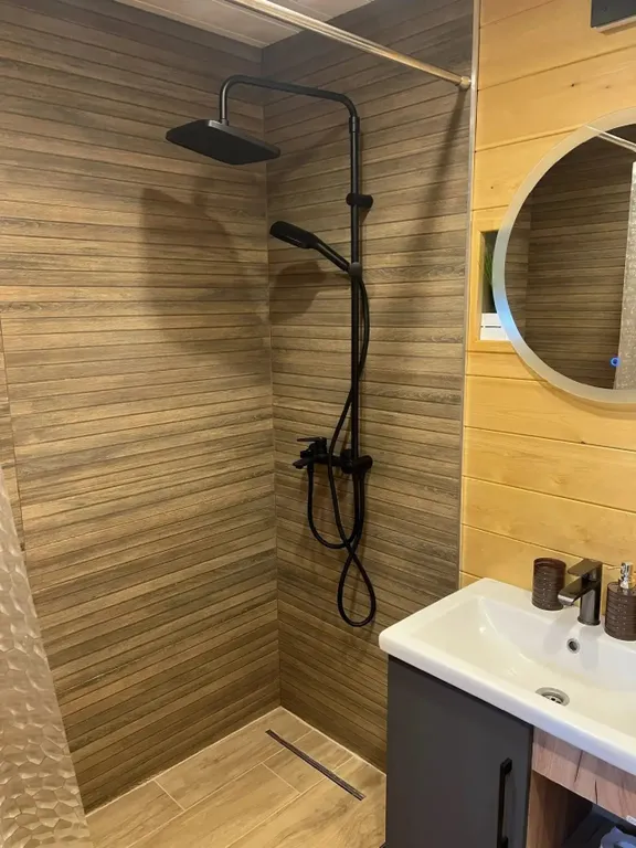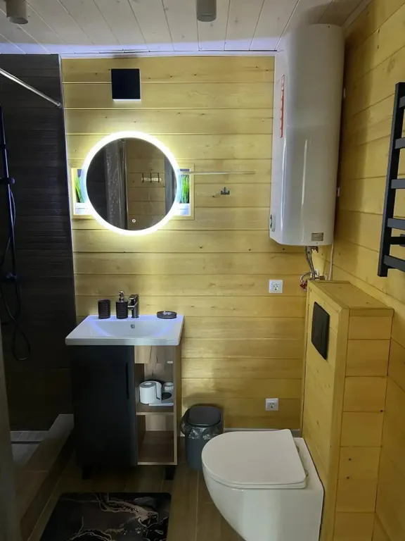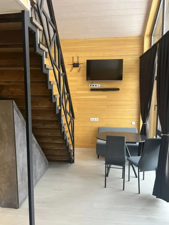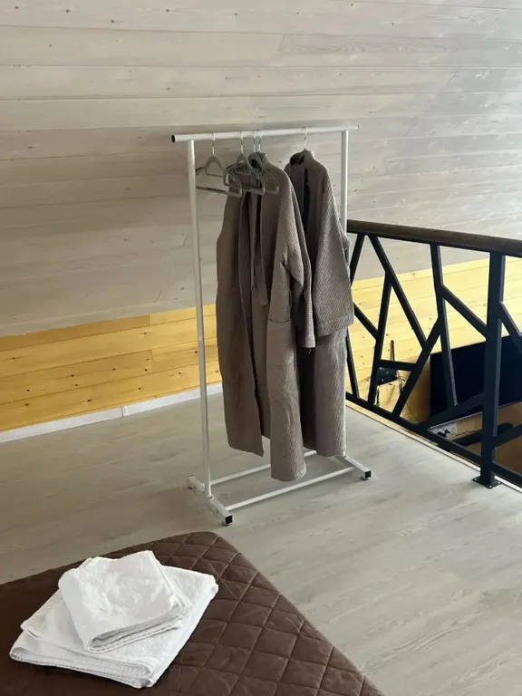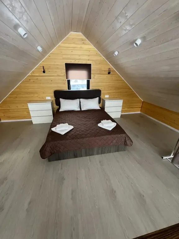 В доме две комнаты с двухспальными кроватями — комфортные матрасы и белоснежное бельё.