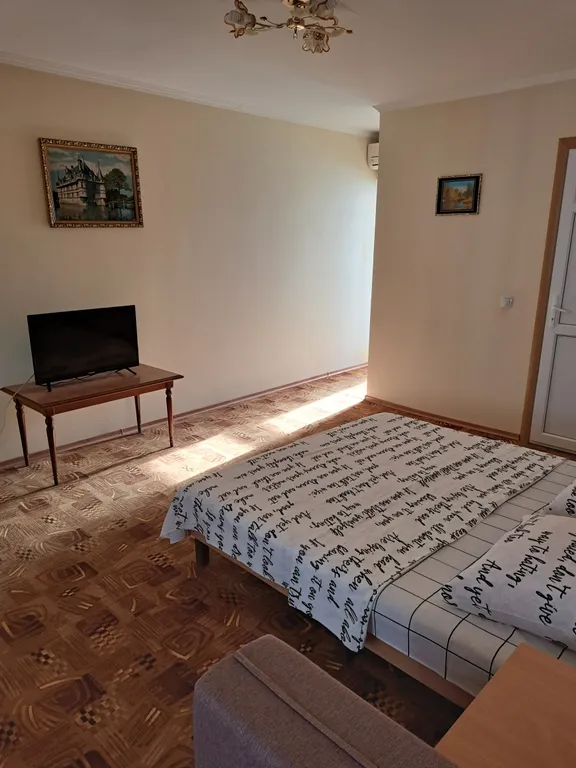 В номере: две полуторные кровати, диван, шкаф, телевизор, кондиционер, кухня, санузел.