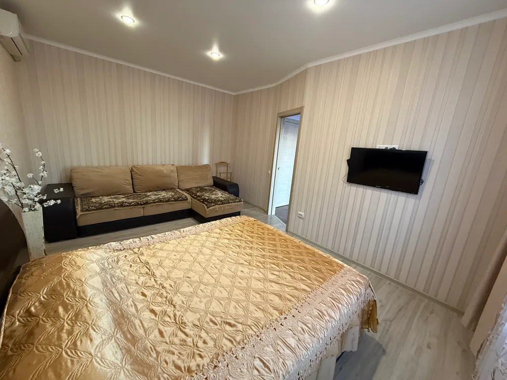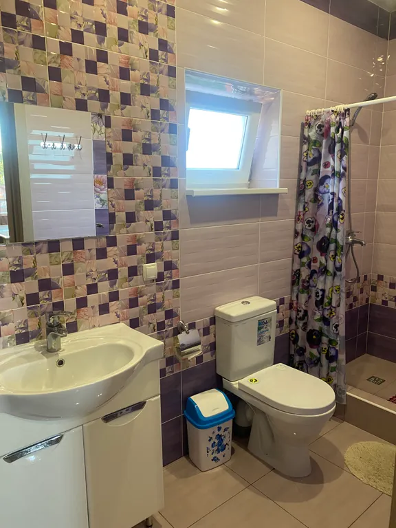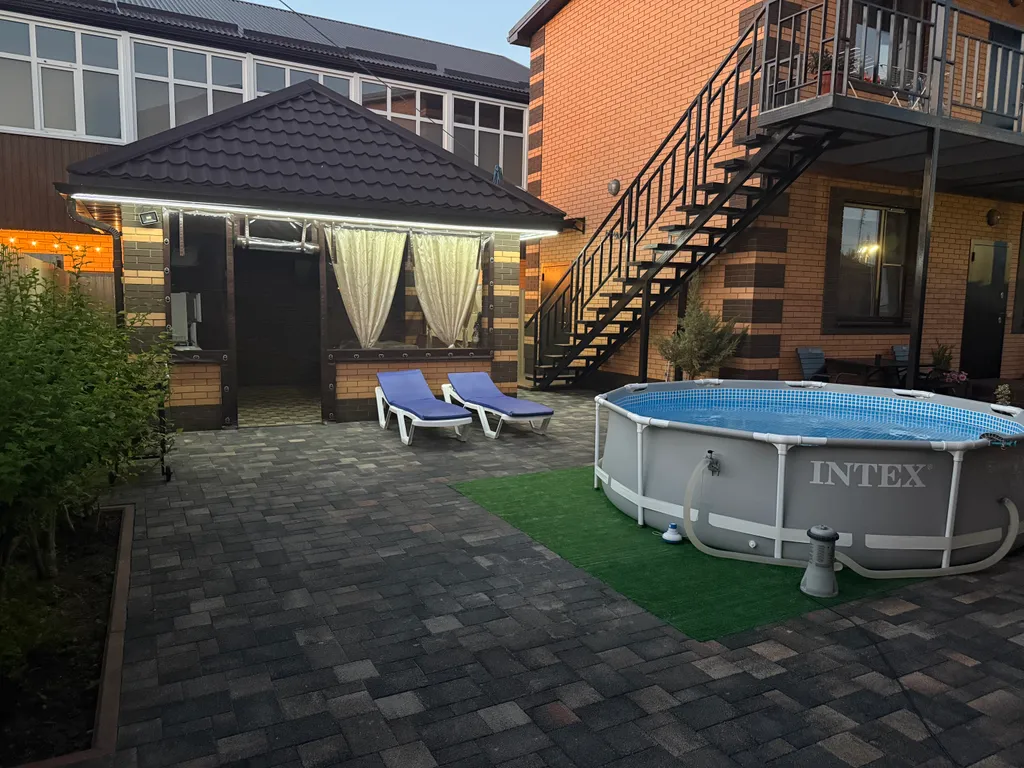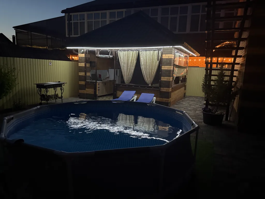 Во дворе есть большой бассейн (стоит фильтр и чистится каждый день, вода всегда кристально чистая!!!), шезлонги, мангал и батут для детей. Бесплатная стоянка для 2 машин, под навесом, с видеонаблюдением. Дом расположен в удобном месте (в шаговой доступности пляж, набережная, парки, центр).