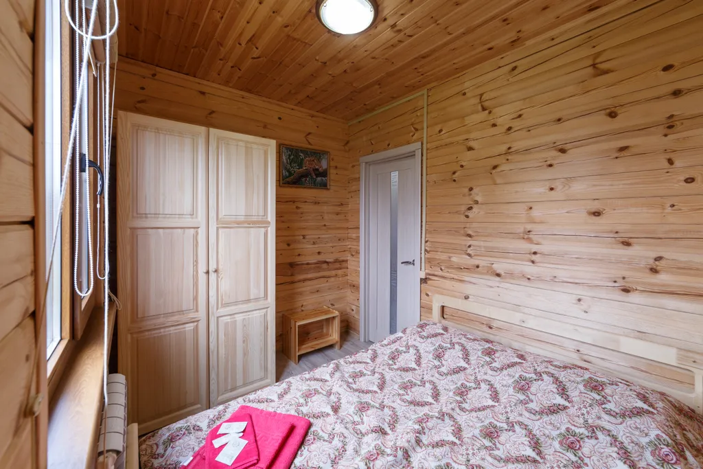 Современный коттедж оборудован всем необходимым для комфортного пребывания у нас. Большая кухня- гостиная с обеденным столом, позволит вместиться небольшой компании. На кухни есть микроволновая печь, чайник, индукционная плита, посуда, маленький холодильник.