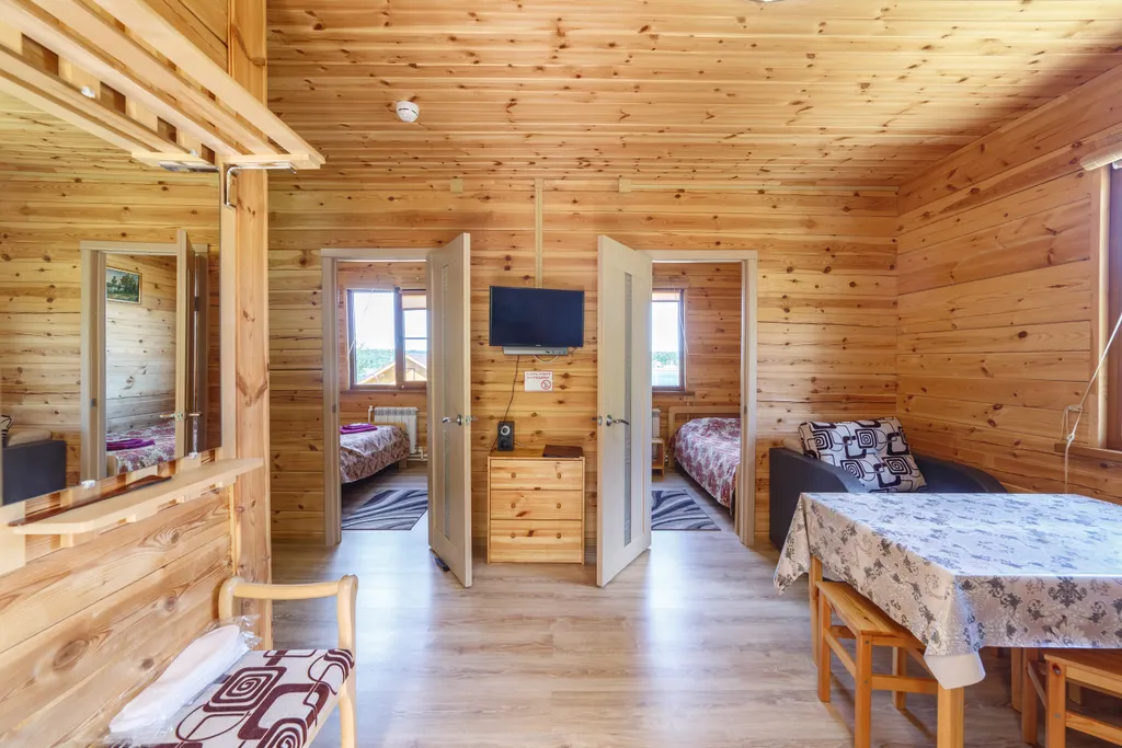 К услугам гостей гостиничный комплекс, состоящий из 12 уютных 3-местных номеров. Можно арендовать благоустроенные коттеджи из экологичных и натуральных материалов, имеется двухэтажное бунгало с сауной. На территории Банный чан и Банный комплекс с русской парной.