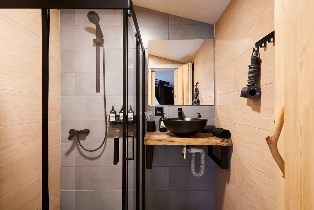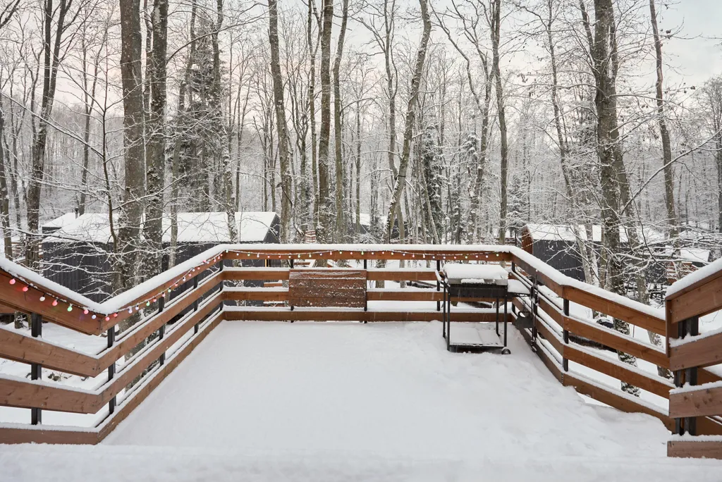 В уютном и теплом домике «Стандарт» на 2 человек — панорамные окна с видом на лес, удобная дизайнерская мебель, холодильник, консьерж-сервис с умным голосовым помощником Алиса. Управляйте светом и смотрите кино с проектором (доступны Кинопоиск/Окко). Вход в домик — через собственную террасу с современным грилем.