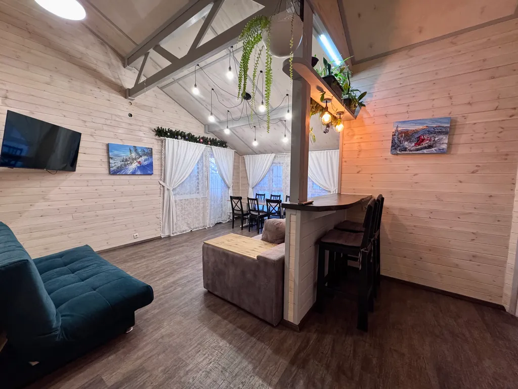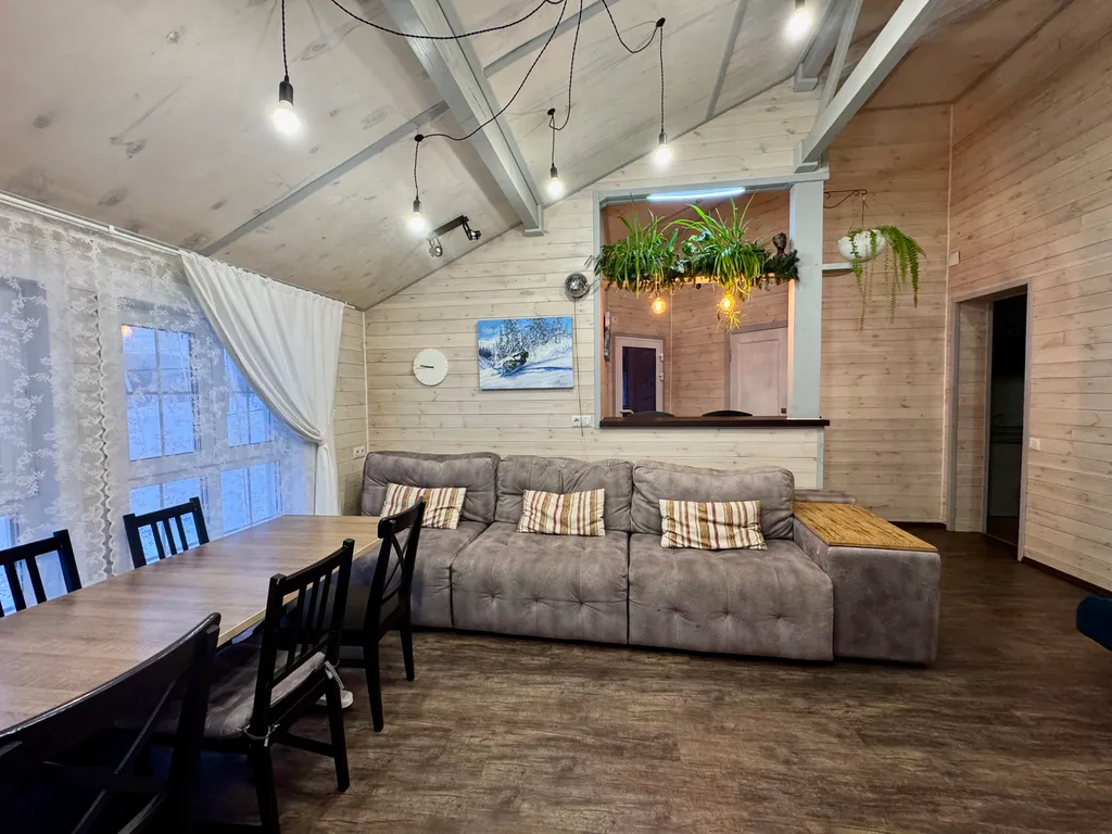 Просторная гостиная с панорамными окнами