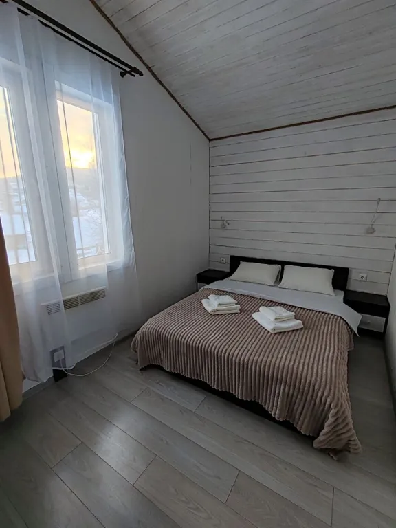 Территория дома: баня, чан, беседка с мангалом, костровая зона, бассейн (летом), батут, качели, парковка на 8 авто.
