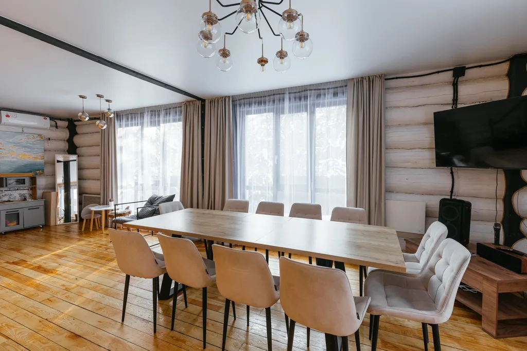 Дом удобно подходит для дней рождений, юбилеев, девичников, семейных встреч и спокойных выходных за городом.